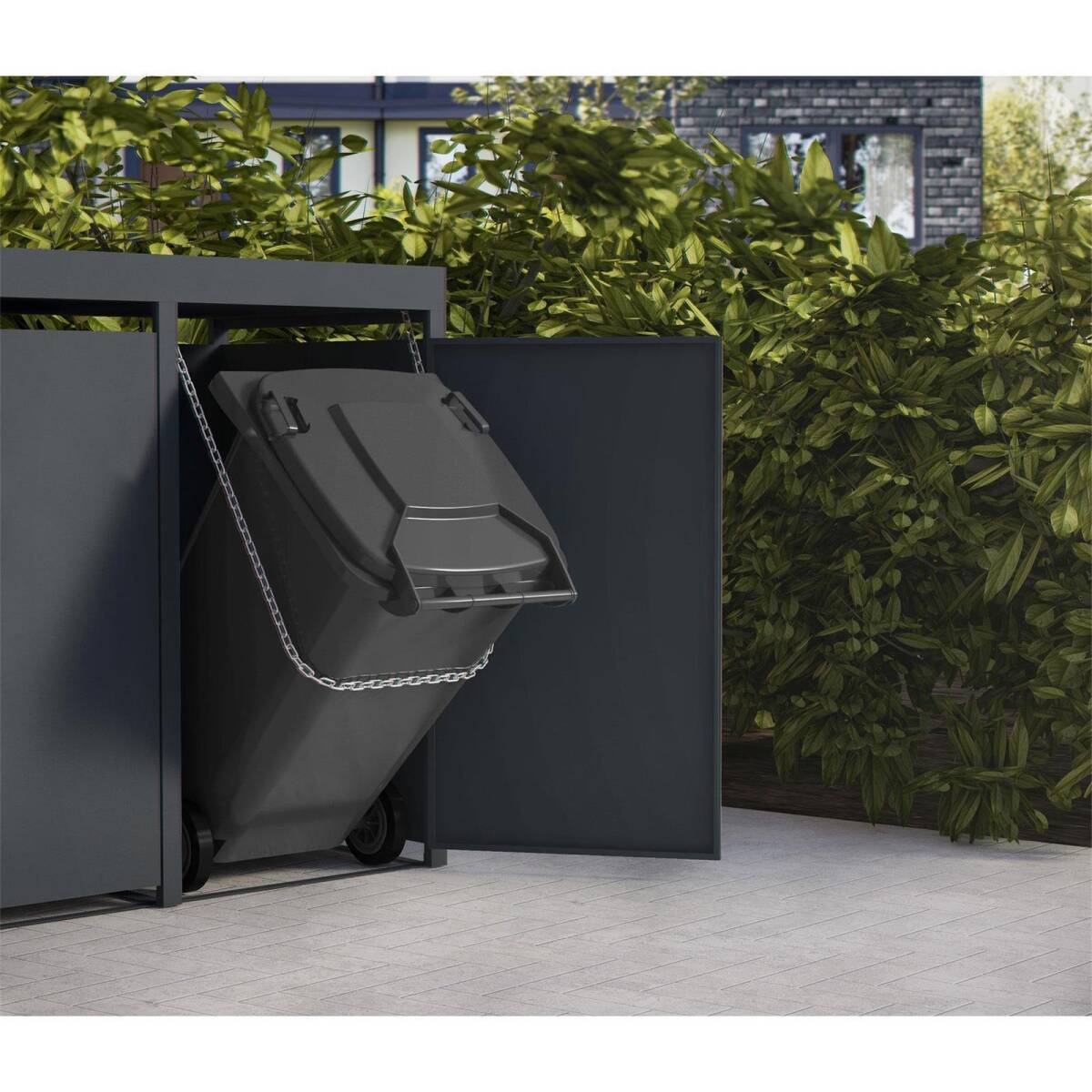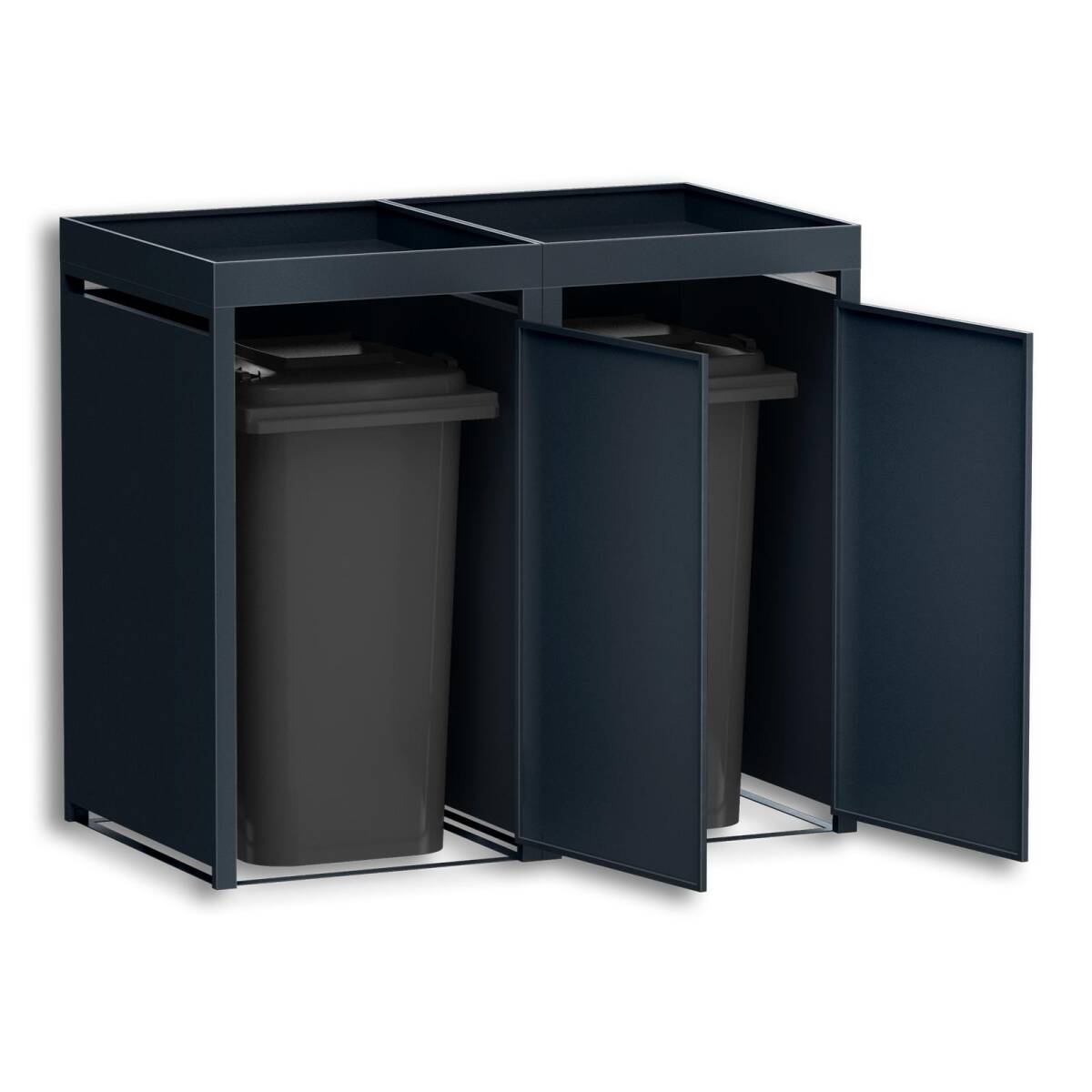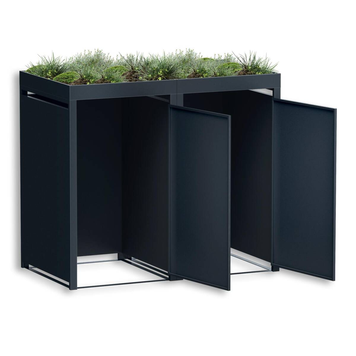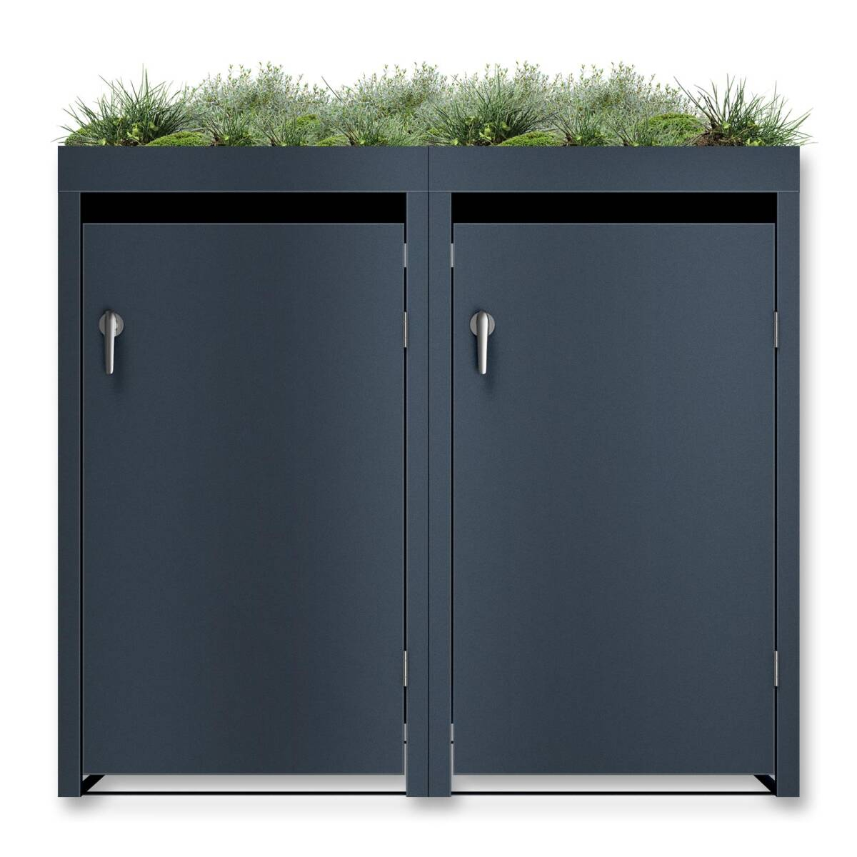 Cutie de gunoi MimoElvo cu acoperiș de plante | 2 compartimente | 240l | Antracit RAL 7016 | Mâner ușă cu încuietoare