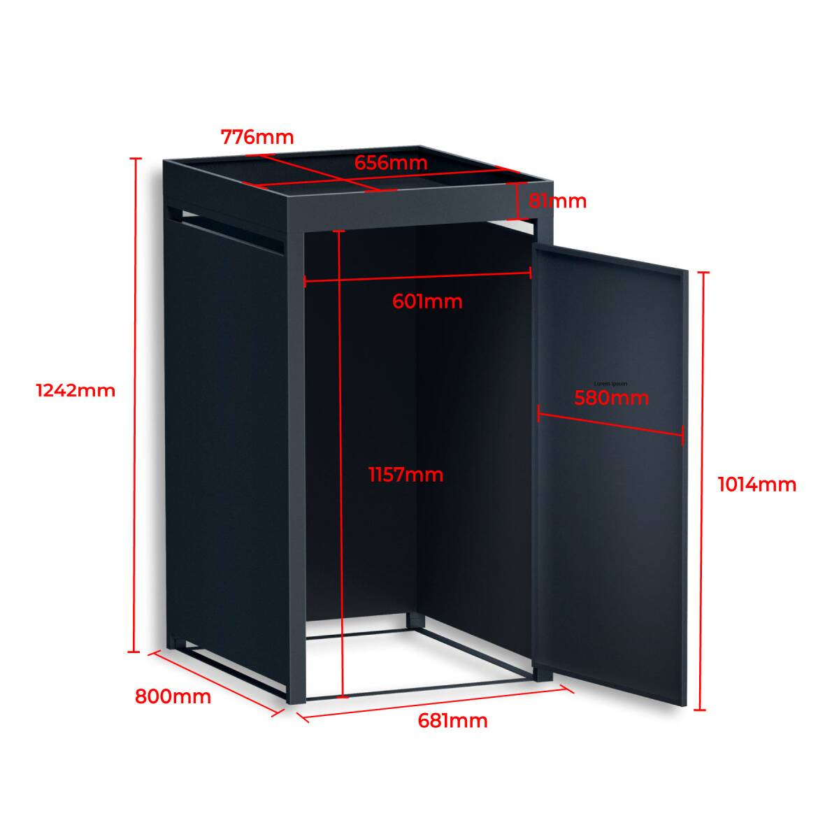 Comandați depozitare pentru toate coșurile de gunoi comune Acoperiș cu plante integrat pentru opțiuni individuale de grădinărit Confecționat din oțel solid cu acoperire cu vopsea pulbere în câmp electrostatic rezistentă la intemperii în antracit RAL 7016 Deschidere și închidere ușoară datorită tehnologiei de închidere soft Operare ușoară cu o singură mână datorită capacului automat cu amortizoare de presiune a gazului