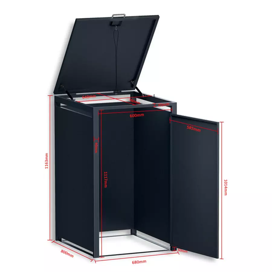 Comandați depozitare pentru toate coșurile de gunoi comune Fabricat din oțel solid, cu un strat de vopsea în câmp electrostatic rezistent la intemperii, antracit 7016 Deschidere și închidere ușoară datorită tehnologiei de închidere soft Operare ușoară cu o singură mână datorită capacului automat cu amortizoare de presiune a gazului