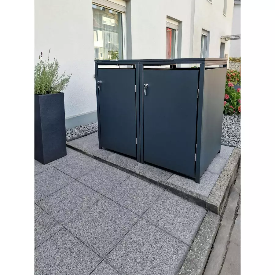 Cutie de gunoi Metzler din oțel acoperit cu vopsea în câmp electrostatic rezistent la intemperii, cu capac practic automat pentru 2 coșuri de gunoi cu o capacitate de 60-240 litri Cutia de gunoi MimoElvo rezistentă la intemperii, acoperită cu vopsea pulbere în câmp electrostatic, în gri antracit RAL7016, este cea mai practică și mai elegantă soluție pentru depozitarea discretă și îngrijită a coșurilor de gunoi. Fabricată în renumita calitate Metzler din oțel de calitate superioară, această cutie de gunoi cu roți oferă o construcție extrem de durabilă, bine gândită și robustă, care poate rezista ani de utilizare chiar și în cele mai nefavorabile condiții de mediu. Avantaje practice ale cutiei de gunoi MimoElvo: Rezistent la intemperii și amp; durabil Material extrem de robust cu acoperire cu vopsea pulbere în câmp electrostatic Aruncare convenabilă a deșeurilor datorită capacului automat cu amortizoare integrate Poate fi combinat modular cu toate cutiile de gunoi Metzler, precum și cu cele practice Raft pentru lemn de foc/unelte Opritor de ușă DIN dreapta, toate încuietorile cilindrice cu cheie (o cheie deschide toate încuietorile ușilor) Cea mai simplă modalitate de a elimina deșeurile Datorită capacului automat practic cu amortizoare de presiune a gazului, precum și mecanismului de închidere soft și amortizoare de închidere încetinită, deșeurile menajere pot fi plasate convenabil la coșul de gunoi cu o singură mână și fără niciun efort. Datorită mânerului ușii placat cu crom cu un încuietor acoperit protejat împotriva intemperiilor de pe ușa cutiei de gunoi, coșurile de gunoi pot fi îndepărtate cu ușurință pentru golire. Oțel rezistent, galvanizat și acoperit cu vopsea în câmp electrostatic Pentru a asigura longevitatea cutiilor de gunoi, noi cei de la MimoElvo folosim oțel galvanizat pentru producție, cunoscut din industria auto. Acesta este, de asemenea, finisat cu vopsea în vopsea pulbere în câmp electrostatic în gri antracit RAL 7016. Acest lucru nu numai că asigură un aspect modern și o senzație plăcută, dar și protejează permanent coșul de gunoi de influențele vremii, cum ar fi razele UV, ploaia și zăpada. Design MimoElvo excelent În calitate de lider de piață pentru produse pentru intrările în case, noi, cei de la MimoElvo , suntem acum cunoscuți cu mult dincolo de granițele Germaniei. Designerii noștri & Designerii au adaptat în mod optim cutiile de coș de gunoi la cerințele zonelor moderne de intrare pentru a asigura un aspect de ansamblu exclusivist al intrării în casă. Asamblare ușoară / poate fi combinat modular Folosind instrucțiunile noastre de pornire rapidă, coșul de gunoi poate fi configurat cu ușurință și în doar câțiva pași și plasat la destinație. Toate componentele necesare, inclusiv o nivelă cu bulă de aer, sunt deja incluse în pachetul de livrare. Cutia poate fi amplasată pe orice suprafață plană în aer liber, ceea ce o face perfectă pentru alei, grădini și curți. Toate cutiile de gunoi MimoElvo au un design modular și pot fi combinate. Acestea sunt module individuale cu material de fixare adecvat pentru extinderea modulară. Sfera de livrare Cutie de gunoi MimoElvo (transport cu mai multe colete) Material de montare, inclusiv nivel cu bulă de aer 2 chei per coș de gunoi (toate încuietorile sunt cheie la fel)