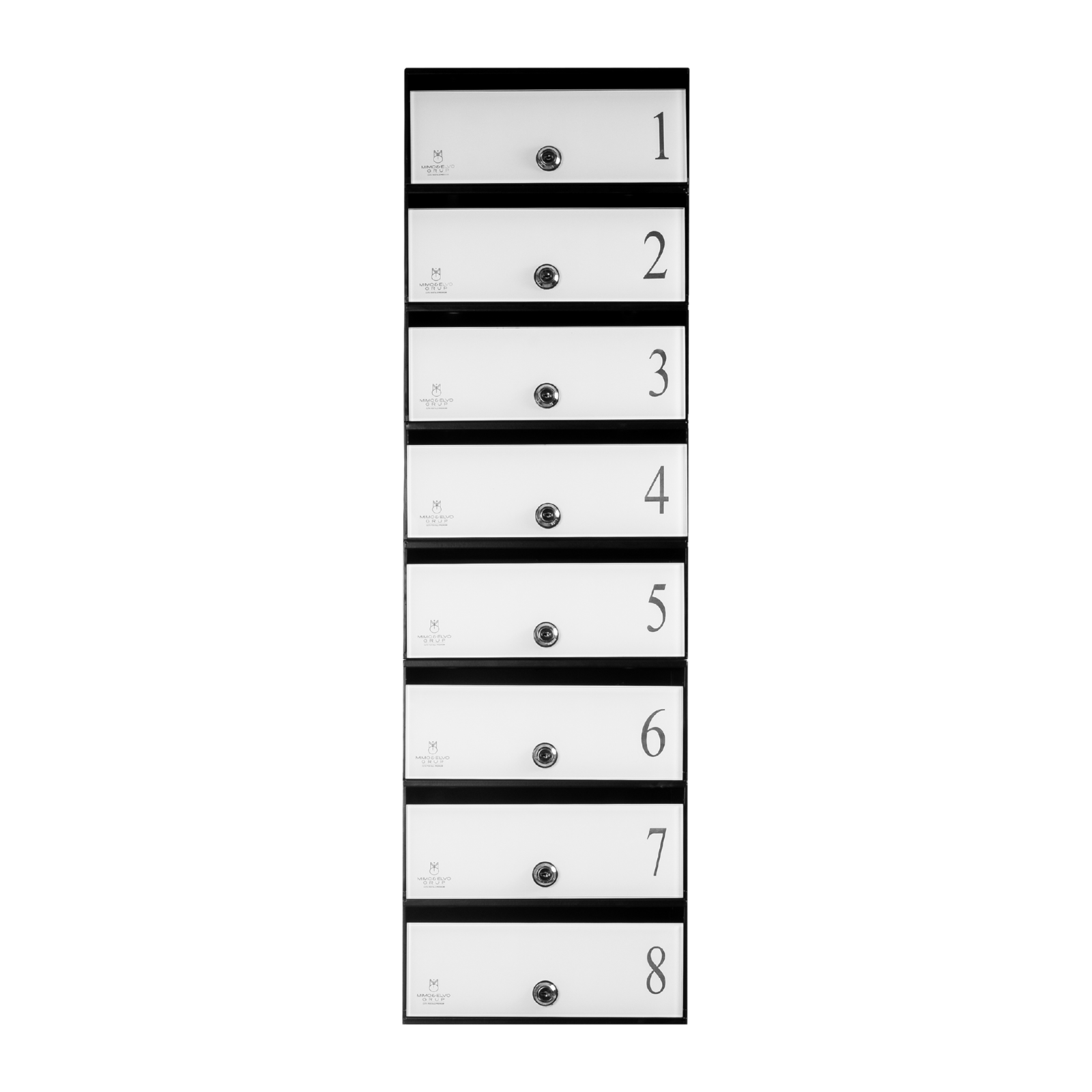 Suntem singurii producători care utilizeaza tehnologia de sablare cu laser pentru inscripționarea numerelor și logo-urilor pe sticla Lacobel montată pe usa cutiilor poștale, oferind un design rafinat și o durabilitate excepțională, spre deosebire de metoda convențională de numerotare cu autocolant.