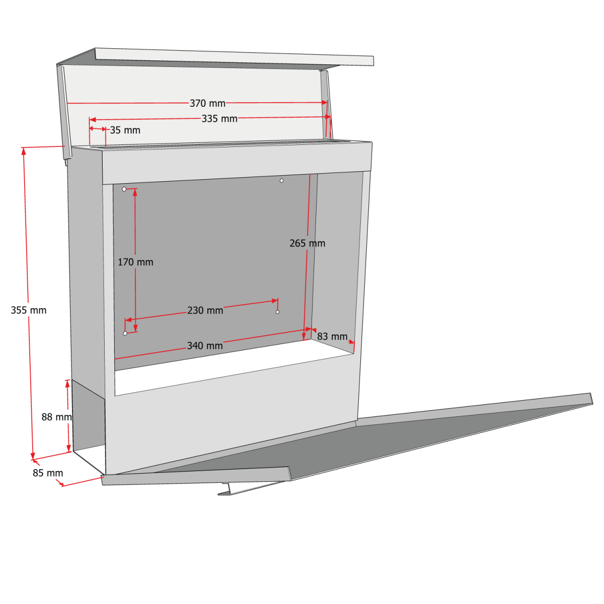 • Dimensiunile cutiei poștale: 370 × 370 × 105 mm